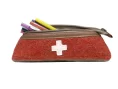 Ein Stift- , Schmink- oder Krimskrams-Etui. Bestechend ist, neben dem Material aus 100 % original Schweizer Armee-Decken, auch die nicht alltägliche Dreiecksform.