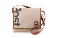 Kleine Umhängetasche ganz gross. Der Postsack aus dem diese Tasche stammt, hätte sich sicher nicht träumen lassen, dass er sich als Schultertasche oder Kuriertasche an einen Menschen schmiegt und gewissenhaft Schlüssel, Portemonnaie und Handy beherbergen soll und kann.