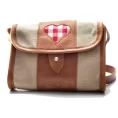 Mit diese kleine Umhängetasche aus zarte Rindsleder und der Kombination Recycling-Postsäcke und Kölsch-Vichy-Stoff werden Sie immer "in" sein. Das Rindsleder mutiert beim Gebrauch rasch zum Vintage Look, was der Tasche noch mehr Charakter verleiht und damit eine Style-Garantie für Jahre ist. Der praktische Verschluss und der verstellbare Lederträger macht sie handlich und bequem.