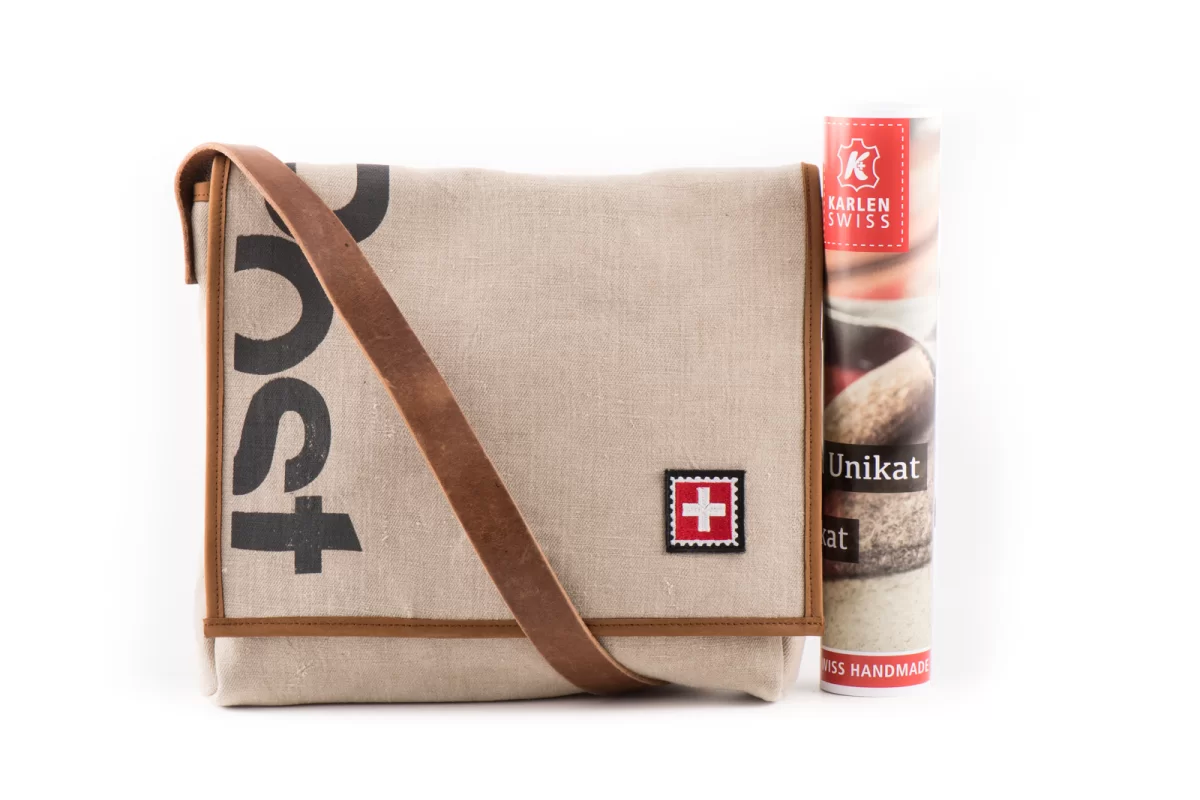 Das zweite Leben dieses Postsacks könnte ganz schön aufregend werden. Als Schultertasche kann er die Welt neu entdecken. Vielleicht einen Herren täglich zur Arbeit begleiten oder als Handtasche das i-Tüpfelchen für ein Outfit einer Dame sein - schöne Aussichten!