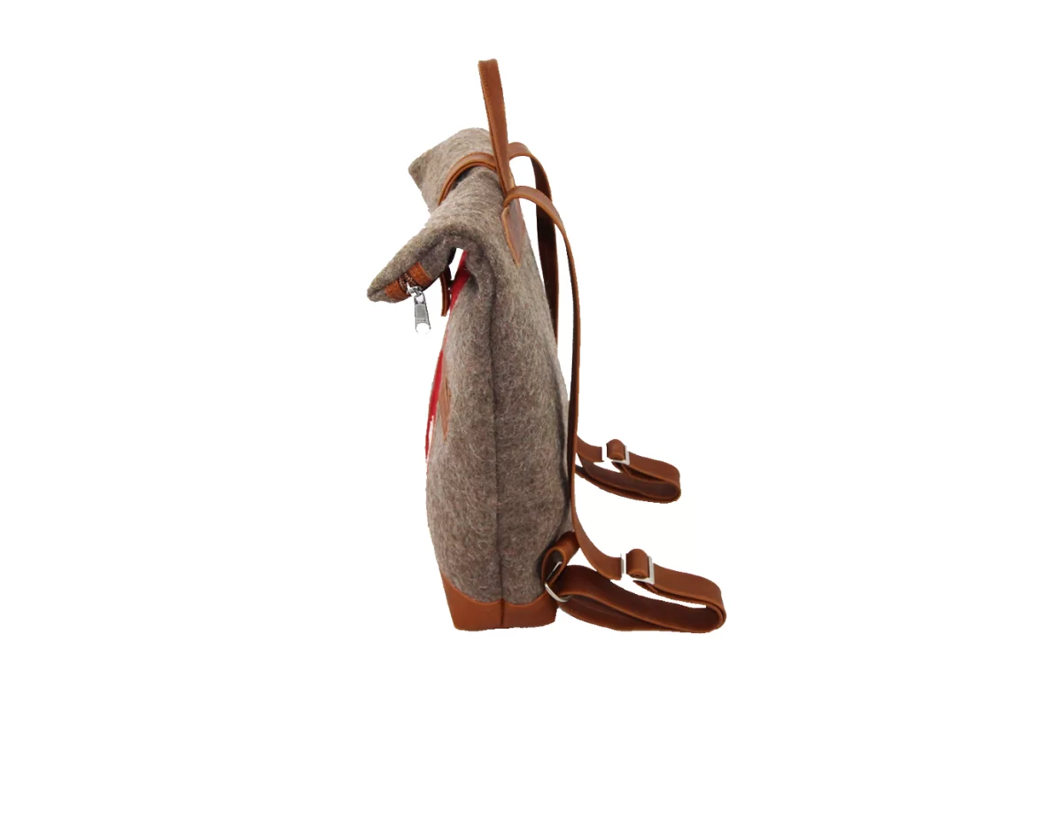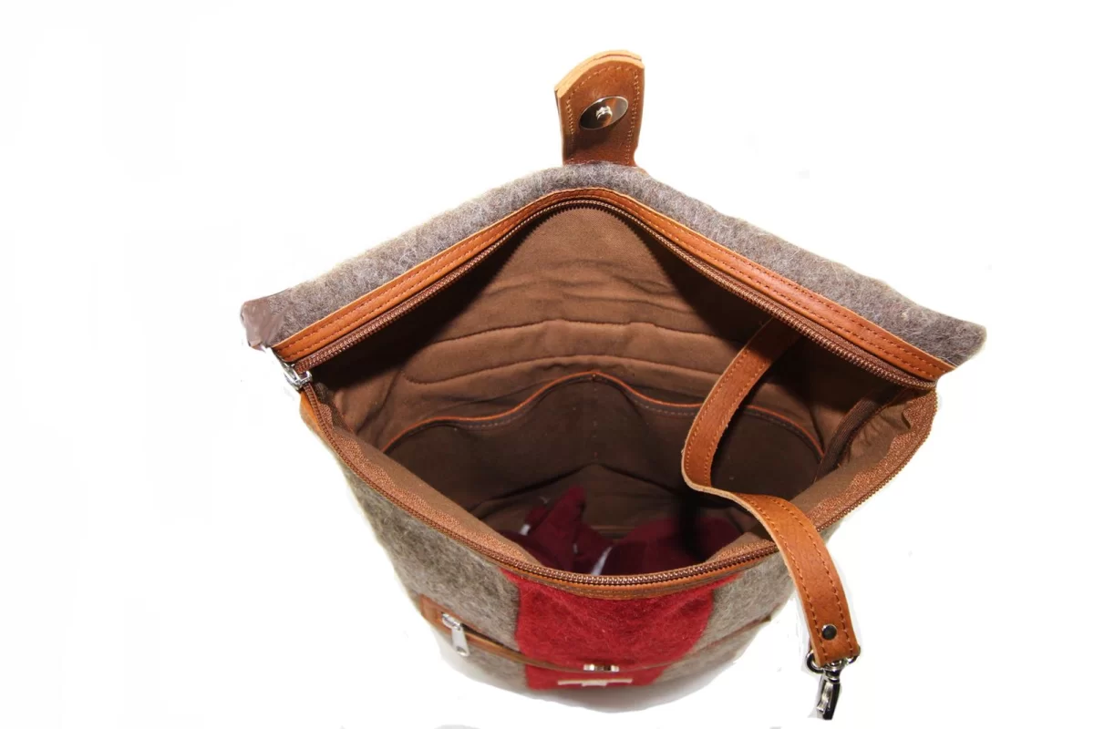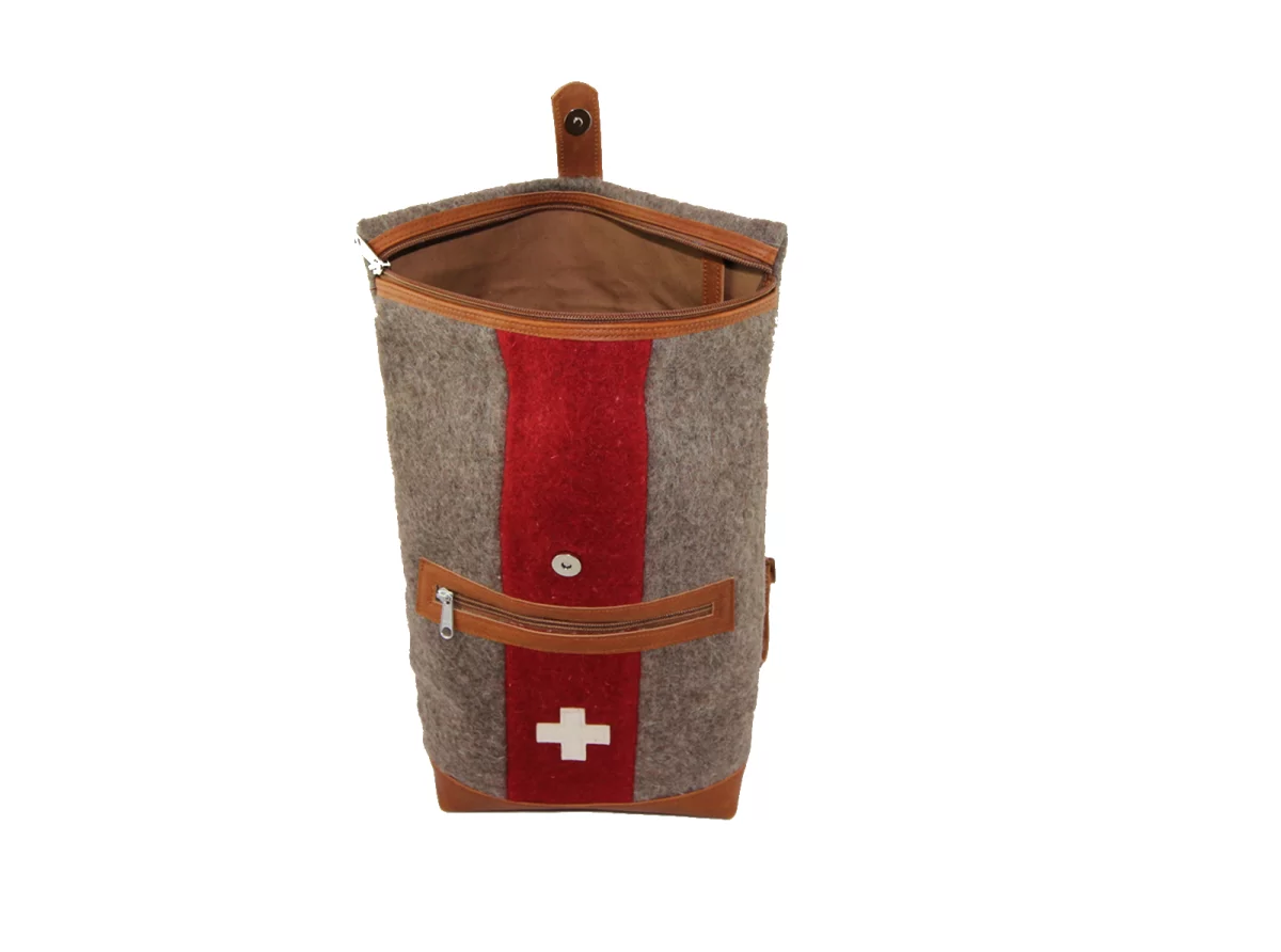 Robuster, modischer Rucksack, mit Tragehenkel. Träger aus Leder, verstellbar. Die Höhe kann mit dem Umschlag variiert werden. Heisst umschlagen oder auch mal nicht, wenn etwas Längeres mit soll - einfach praktisch. Hauptfach ist mit Reissverschluss verschliessbar. Die Aussentasche macht den Rucksack noch beliebter. Last but not least - das Material. Das war mal eine original Schweizer-Armee-Decke. Einzigartig, robust. Ein Rucksack mit Stil und Vergangenheit.