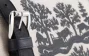 Die Szene eines einzigartigen Scherenschnitts auf einer Leinentasche gedruckt. Das Auge kann sich kaum satt sehen.