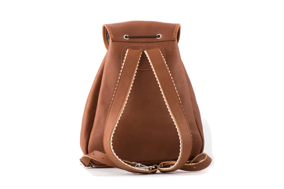 Währschafter Rücksack in Rindsleder. Treu dem Moto " Die guten alten Zeiten" hat dieser Rucksack Zickzack-Filz-Posterungen an den Lederträgern und wie "ano dazumal" wird er mit Lochschnallen verschlossen oder verstellt. Ein richtiger Generationen-Rucksack.