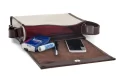 Eine Umhängetasche die alleine schon durch die Materialwahl besticht. Feines Leder mit Zwilch. Der Stoff aus dem Hosen für Könige gemacht werden. Für Schwingerkönige und Könige des Alltags.