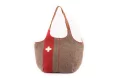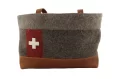 Lieblingstasche, zu diesen Status mutiert diese Tasche schnell. Denn, trotz ihrer Grösse sieht diese Tasche fast zierlich aus. Rundum Lederriemen die zugleich die Trageriemen sind, gepaart mit dem Quer-Lederband und das original Schweizer Kreuz macht sie noch spezieller. Ob Sie die schmalen Ordner von der Arbeit oder den Einkauf auf dem Rückweg verstauen - Beifall werden Sie mit dieser Tasche immer ernten.