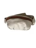Bauchtasche die dank dem schönen Leinenstoff sehr gut zu vielen Outfits passt. Der Flachs, das Rohmaterials des Leinenstoffs wächst in der Schweiz im Emmental. Nicht nur der Leinenstoff hat eine Geschichte. Nein auch das Lederteil hatte bereits ein Leben. Es diente in der Schweizer Armee als Packriemli (Packriemen) Schmale Gurte mit denen diverses zusammengeschnürt wurde. Die Bauchtasche kann mit einem Reissverschluss sicher verschlossen werden. Auf der Rückseite ist ein weiteres offenes Fache, praktisch für Dinge die Frau schnell griffbereit haben möchte. Verstellbarer Träger damit die Bauchtasche auch modisch über der Schulter umgehängt werden kann.