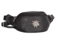 Kleine Hüfttasche mit Edelweiss. Per Schnappverschluss schnell um die Hüfte oder über der Schulter umgehängt. Der Gurt lässt sich stufenlos per Schlaufenschnalle verstellen. Im Inneren bietet diese Bauchtasche genügend Platz für Schlüssel, Handy, Portemonnaie und was sonst noch beim Hundespaziergang oder auf einem Ausflug mit muss. Auch auf Reisen und als Ergänzung zu einer grossen Tasche ist eine Hüfttasche praktisch. Das fein Leder trägt zusätzlich bei, dass Sie schon bald nicht mehr auf diesen Begleiter verzichten möchten.