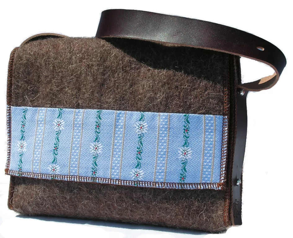 Edelweiss Stoff und Schweizer Armee Decke - Tradition mit Tradition vereint und was ist das Ergebnis? Eine moderne Umhängetasche die auch bei nicht traditionell veranlagten Menschen grossen Anklang findet. Der Deckel mit Klettverschluss ermöglicht einen schnellen Griff zu Handy, Dokumenten und Co.