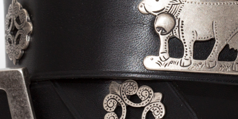 Damen wie Herren verlieben sich in den fröhlichen Gurt mit den Messingbeschlägen von "lachenden" Sonnen. Das macht gute Laune.
