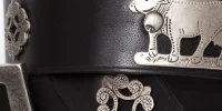 Ein klassisches, geschwärztes Edelweiss auf der Schlaufe ziert diesen Gurt. Edel, dezent und aussagekräftig verschönert dieser Edelweissgurt Herren und Damen Hüften