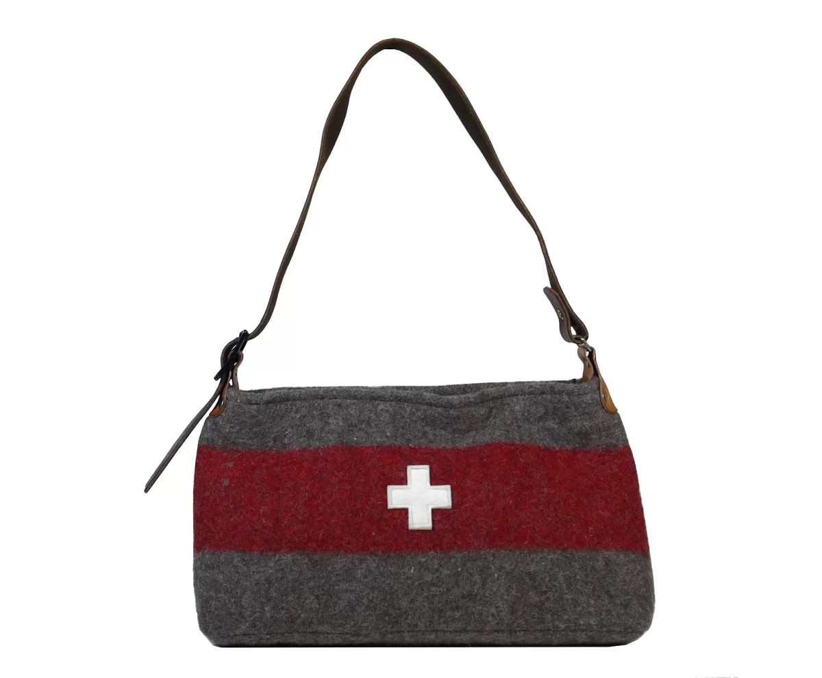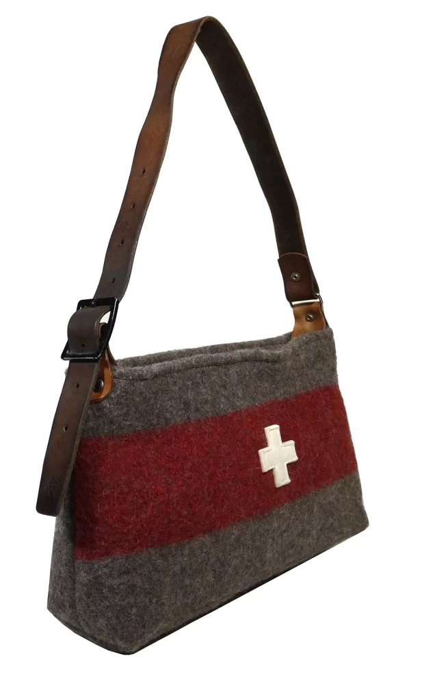Diese Damentasche vereint die modische Form mit dem traditionellen Material der originalen Militärdecke. Das ist einer der Gründe weshalb diese Schultertasche zu vielen Outfits passt. Dank dem verstellbaren Lederriemen kann die Tasche individuell auf die bequeme Länge der Trägerin eingestellt werden.
