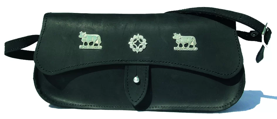 Metall Ornamente und einem kleinen Nietknopf als Verschluss ziert diese kurvige Unterarmtasche. Ein Design das Folklore Fans aber auch Freundinnen von kleinen Taschen voll begeistert. Durch die Länge der Clutch kann sie problemlos die 5 wichtigsten Dinge beherbergen.