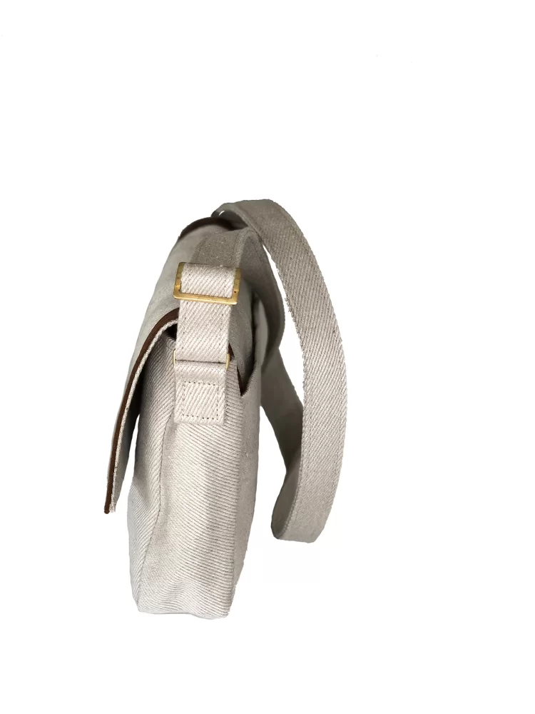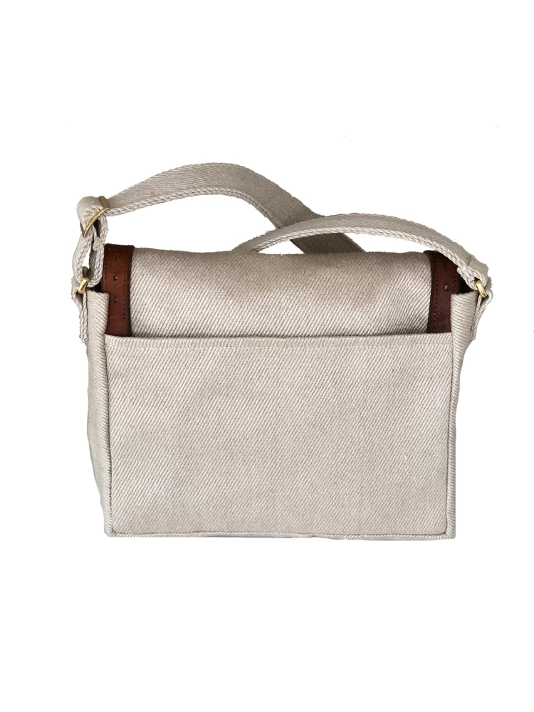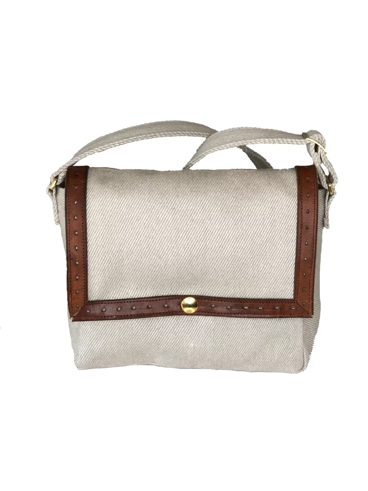 Diese Handtasche besticht durch den wunderschönen Leinenstoff und dem ungewöhnlichen Leder. Der Leinenstoff hat einen sehr angenehmen Griff und auch eine angenehme Geschichte. Der Flachs aus dem diese Leinen gewonnen wurde, wächst im Emmental in der Schweiz. Auch das Leder kann eine Geschichte erzählen. Es war früher bei der Armee als Packriemli (Packriemen) im Einsatz. Was irgendwie zusammengehalten werden musste wurden mit diesen Lederriemen gebunden. Die Tasche kann als Umhängetasche oder über der Schulter getragen werden. Auf der Rückseite befindet sich ein offenes Aussenfach. Sehr praktisch für alles was griffbereit sein soll