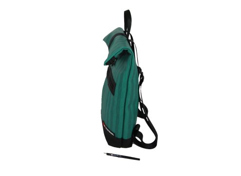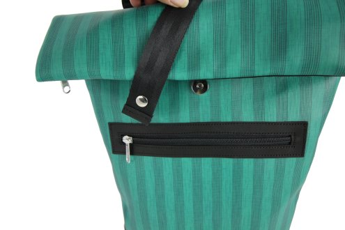 Robuster, modischer Rucksack, mit Tragehenkel. Träger aus Polyester (Autogurtenoptik). Die Höhe kann mit dem Umschlag variiert werden. Den Umschlag einfach offen lassen und es steht mehr Höhe zur Verfügung. Aussen wie Hauptfach ist mit Reissverschluss verschliessbar. Last but not least - das Material. Robust und abwaschbar. In Rot und Grün erhältlich. Die Farben sind nicht von ungefähr so gewählt. Hier sprechen wir vom selben Material wie früher die Sitze in den Zügen bezogen wurden.