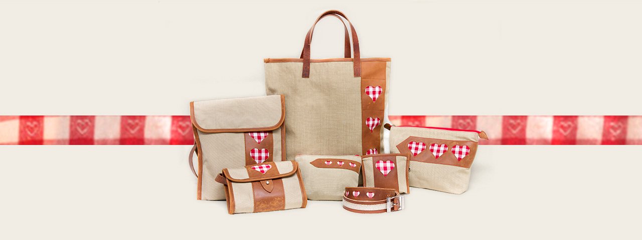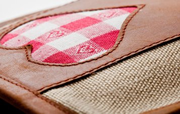 Gegensätze ziehen sich an. Vichy Karo, der liebliche Stoff in Kombination mit feinem Rindsleder.