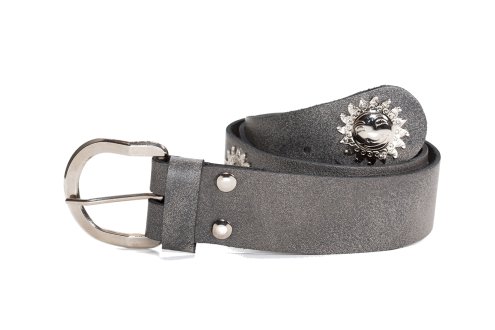 Damen wie Herren verlieben sich in den fröhlichen Gurt mit den Messingbeschlägen von "lachenden" Sonnen. Das macht gute Laune.
