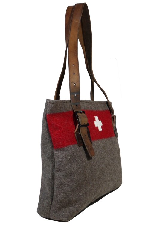 Eine grosse Tasche für Einkäufe, Dokumente und andere wichtig Dinge. Sie ist universell einsetzbar, was diese Tasche zu einem Begleiter für den Berufsalltag wie für die Freizeit macht. Die Schulterriemen sind an ausgedienten Bajonetthalfter genäht. Das sieht nicht nur speziell aus sondern ist auch sehr robust.