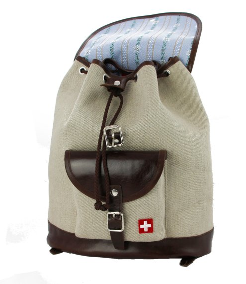 Rucksack aus Zwirn und Leinen. Der Stoff aus dem auch Schwingerhosen genäht sind. Solide und robust, genau richtig für einen Rucksack der Sie bei Ihren Aktivitäten begleitet - egal ob in der Stadt oder auf einer Wanderung.