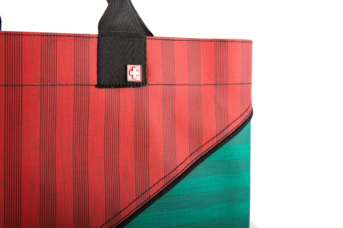 Shopper in Rot-Grün mit Einsteckfach und Reissverschluss. So ist das Portemonnaie sicher untergebracht. Grosse Pet-Flaschen und noch viel mehr findet mühelos Platz. Und wird die Einkaufstasche schwerere ist das auch kein Problem. Der Henkel kann über der Schulter oder an der Hand getragen werden. Diese Einkauftasche gehört zur Zugvögel Kollektion. Bei dem Design in Verbindung mit "Zug" klingelt es bei der Einen oder dem Anderen. Solche Materialen wurden bei den Sitzbezügen früher benutzte. Ein Beweis dafür, dass das Material wirklich einiges aushält.