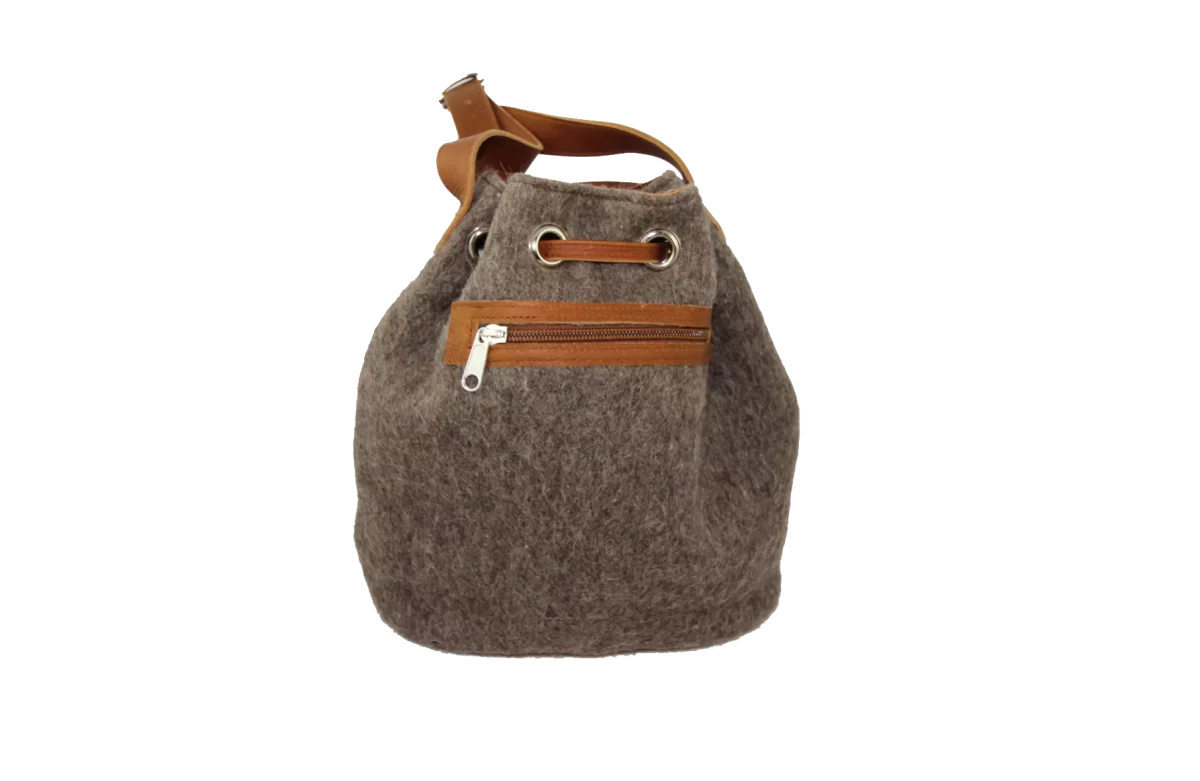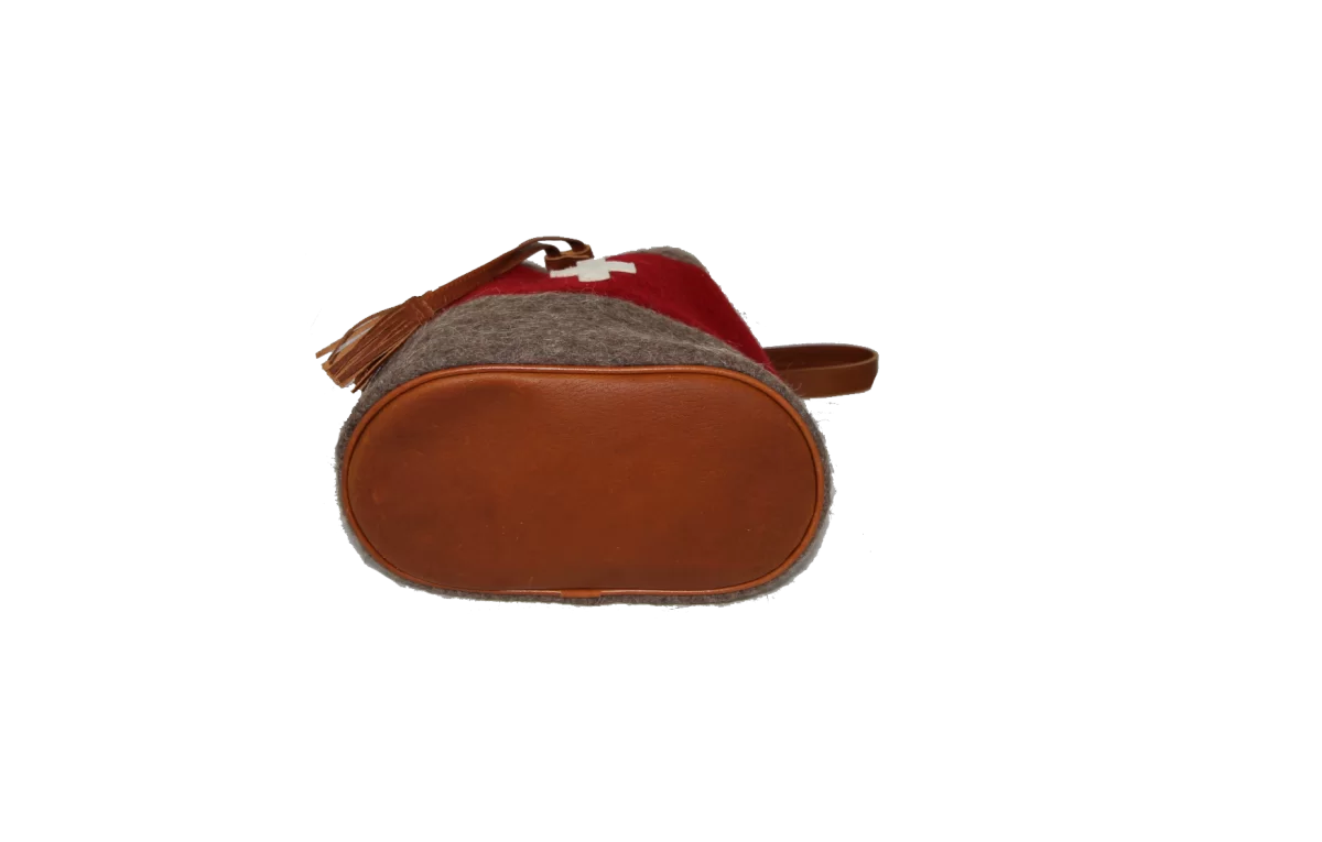 Beuteltasche mit Leder-Zugband damit nichts herausfällt. Obwohl Geld, Handy und andere wichtige Dinge können im Aussen-Reissverschlussfach verstaut werden. Einen Urbanen Touch verleiht der Tasche die Metallösen. Ein schöner Kontrast zu dem Hauptmaterial – original Schweizer Armeedecke. Mit dem hochwertigem Rindsleder - das für den Boden, Trageriemen und Zugband verwendet wurde, wird diese Tasche schnell zum Lieblingsstück.