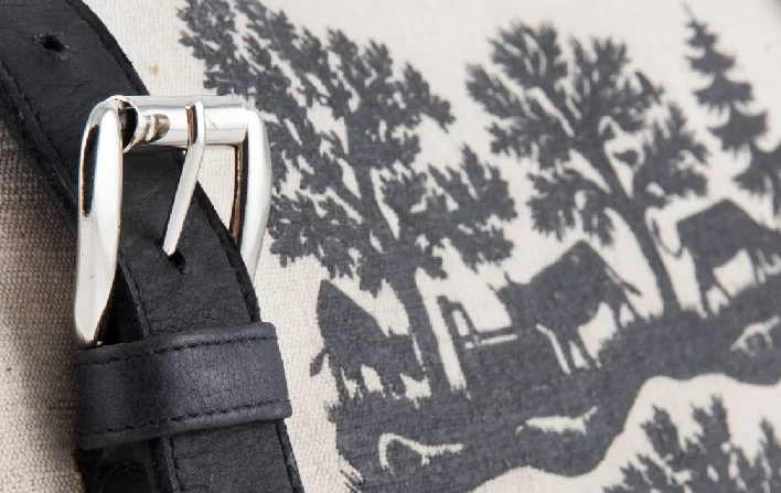 Die Szene eines einzigartigen Scherenschnitts auf einer Leinentasche gedruckt. Das Auge kann sich kaum satt sehen.