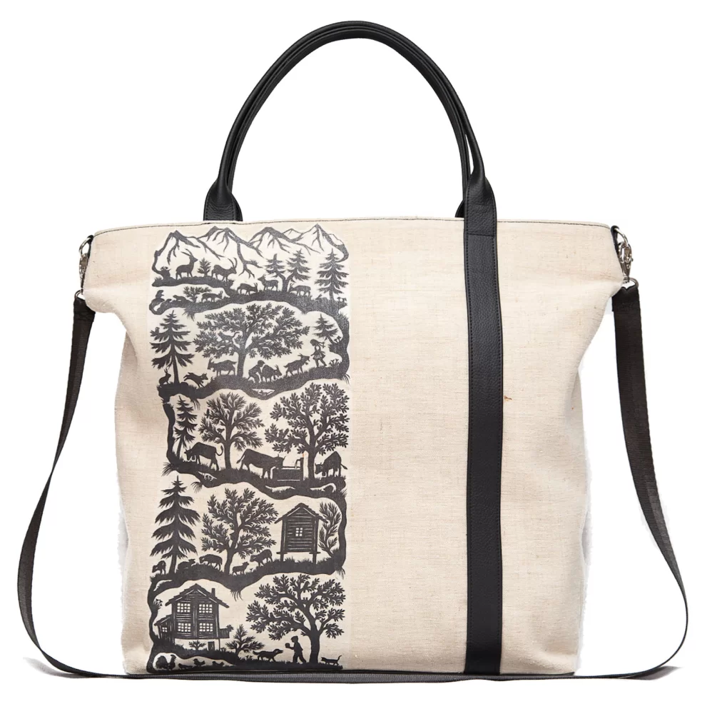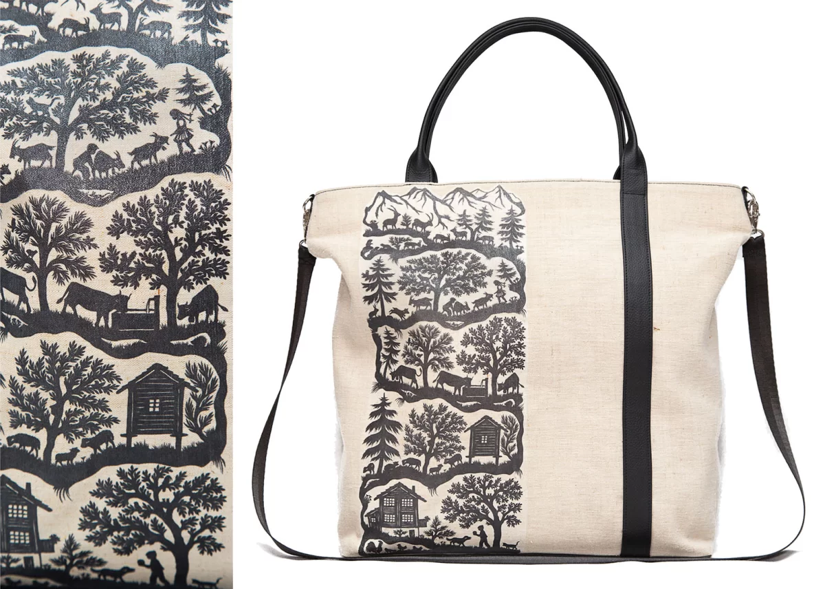 Eine lange Freundschaft könnte Sie mit dieser Handtasche verbinden. Klassisch und doch individuell präsentiert sich dieser Shopper mit der Scherenschnitt Applikation. Die Lieblingszeitschrift hat problemlos Platz und als Einkaufstasche für den kleinen Einkauf auf dem Heimweg kann sie auch gut verwendet werden. Der Scherenschnitt wurde speziell für diese Linie von der Künstlerin Marie-Louise Nadig hergestellt.