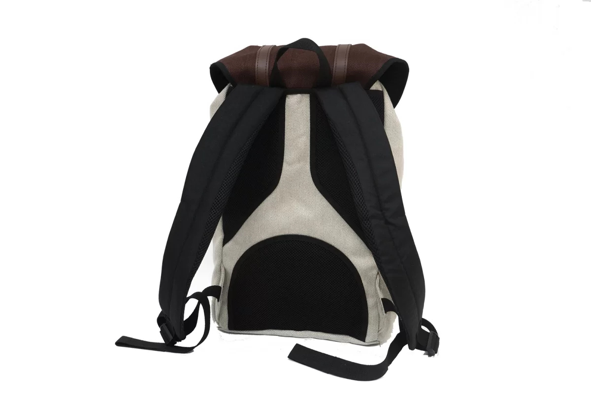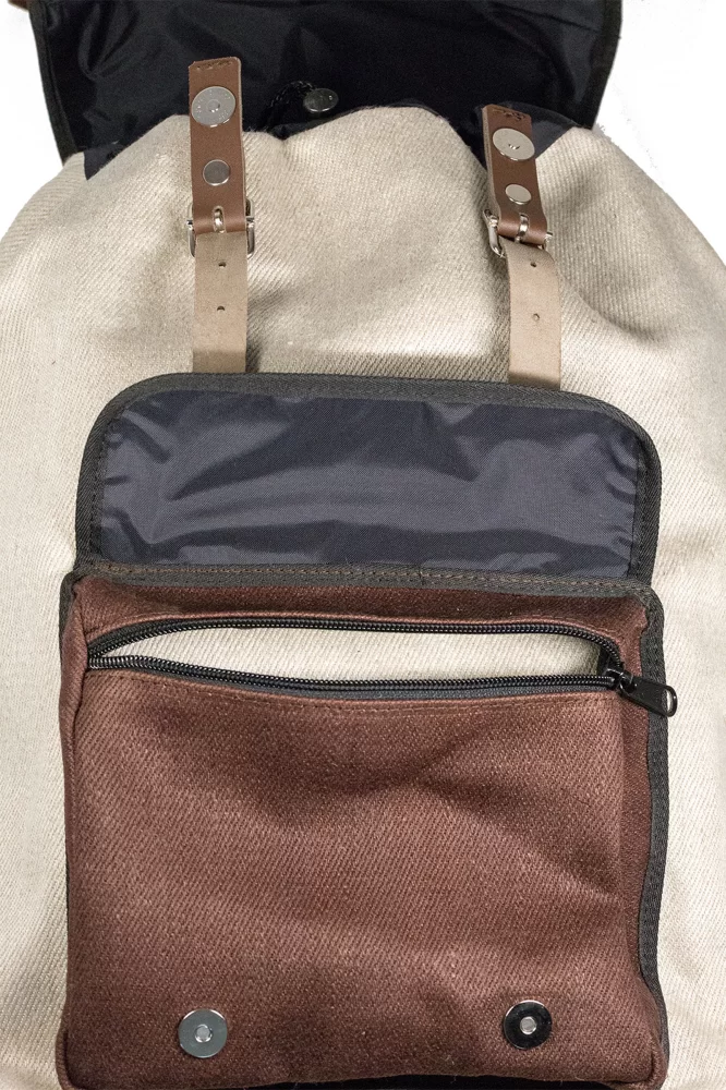 Extravaganter Rucksack aus Leder und Zwilch. Ein idealer Begleiter für den Alltag. Bücher, Tablet und was sonst noch so alles täglich mit soll, alles hat schön Platz. Die Trägerriemen sind gut gepolstert,, so dass auch schwerere Sachen bequem getragen werden können und der Rücken nicht strapaziert wird. Strapaziert werden kann jedoch das Material. Leder mit Zwilch. Ein robustes Duo das so einiges aushält.