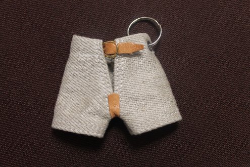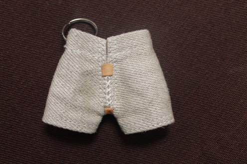 Schwingenhosen Anhänger, der wie sein ganz grosser Bruder aus robustem Zwilch Stoff besteht. Der Anhänger macht aus der einfachsten Tasche ein Hingucker. Aber, auch am Schlüsselbund sieht er witzig aus.