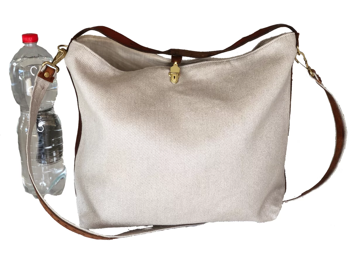 Shopping bag aus Leinen und upcygling Leder. Die Rohfaser dieser Leinen wächst im Emmental in der Schweiz. Ein schöner Leinenstoff mit einer angenehmen Haptik. Die Tasche kann über die Schulter getragen oder umgehängt werden. Der lange Träger lässt sich mit Karabiner unkompliziert abnehmen. Die Tasche hat auch noch einen Henkel damit sie bequem an der Hand getragen werden kann. Dieser und auch die weitern Lederteile sind ehemalige Packriemli. Lederriemen die verwendet wurden um alles möglich zusammenzuschnüren.