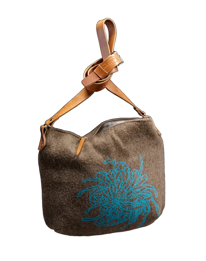Als Motiv für diese Tasche wurde die Rose von Jericho gewählt. Vielleicht auch weil sie immer wieder zu neuem Leben erwacht genau wie die Decken der Schweizer Armee. Zum Beispiel als Umhängetasche mit Leder-Träger und einem Siebdruck. Diese Kombination ist robust aber zugleich auch ganz schön ladylike.