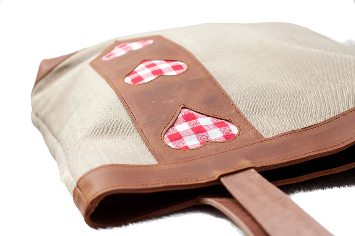 In diese Damentasche passt hervorragend die Lieblingszeitschrift für eine Kaffeepause. Aber auch für den kleinen täglichen Einkauf ist sie bestens geeignet. Am Henkel oder über der Schulter tragbar so oder so bequem und stylisch. Das Grundmaterial sind original Schweizer Postsäcke. Ein robuster Stoff gepaart mit zartem Rindsleder und Vichy Karo oder Kölsch Karo - eine rustikale wie liebliche Mischung.