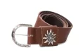 Mehrerer Edelweisse in antik-Optik macht sich dieser Gurt aus anschmiegsamen, robusten Rindsleder in der Casual-Hose, wie einer Jeans gut. Ein Gürtel, der Mann wie Frau jahrelanges begleitet und in fast keiner Garderoben-Grundausstattung fehlen sollte.