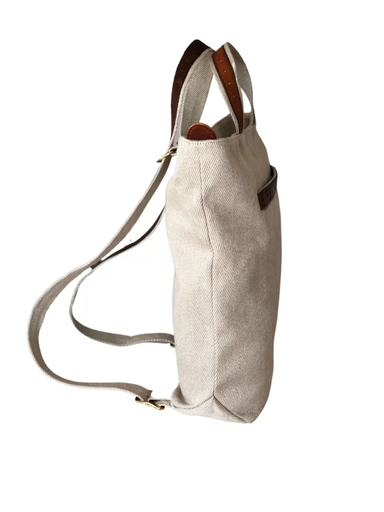 Rucksack als Tasche oder Tasche als Rucksack nutzen, ganz so wie es den Umständen entsprechend gerade am praktischsten ist. Das Besondere ist allerdings das Material. Leinen, dessen Rohmaterial, der Flachs, in der Schweiz im Emmental gewachsen ist. Um diese Tasche/Rucksack herzustellen, braucht es z.b. 9416 Samen bzw. 56.5 g. Auch das Leder hat seine Geschichte: Alle Lederteile sind ehemalige Packriemli (Packriemen), die bei der Schweizer Armee eingesetzt wurden, um alles Mögliche zusammenzubinden.