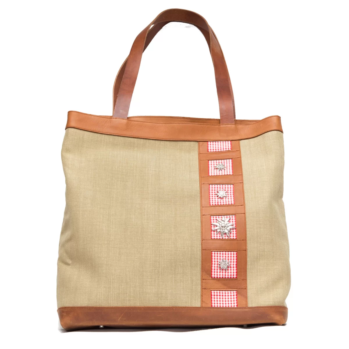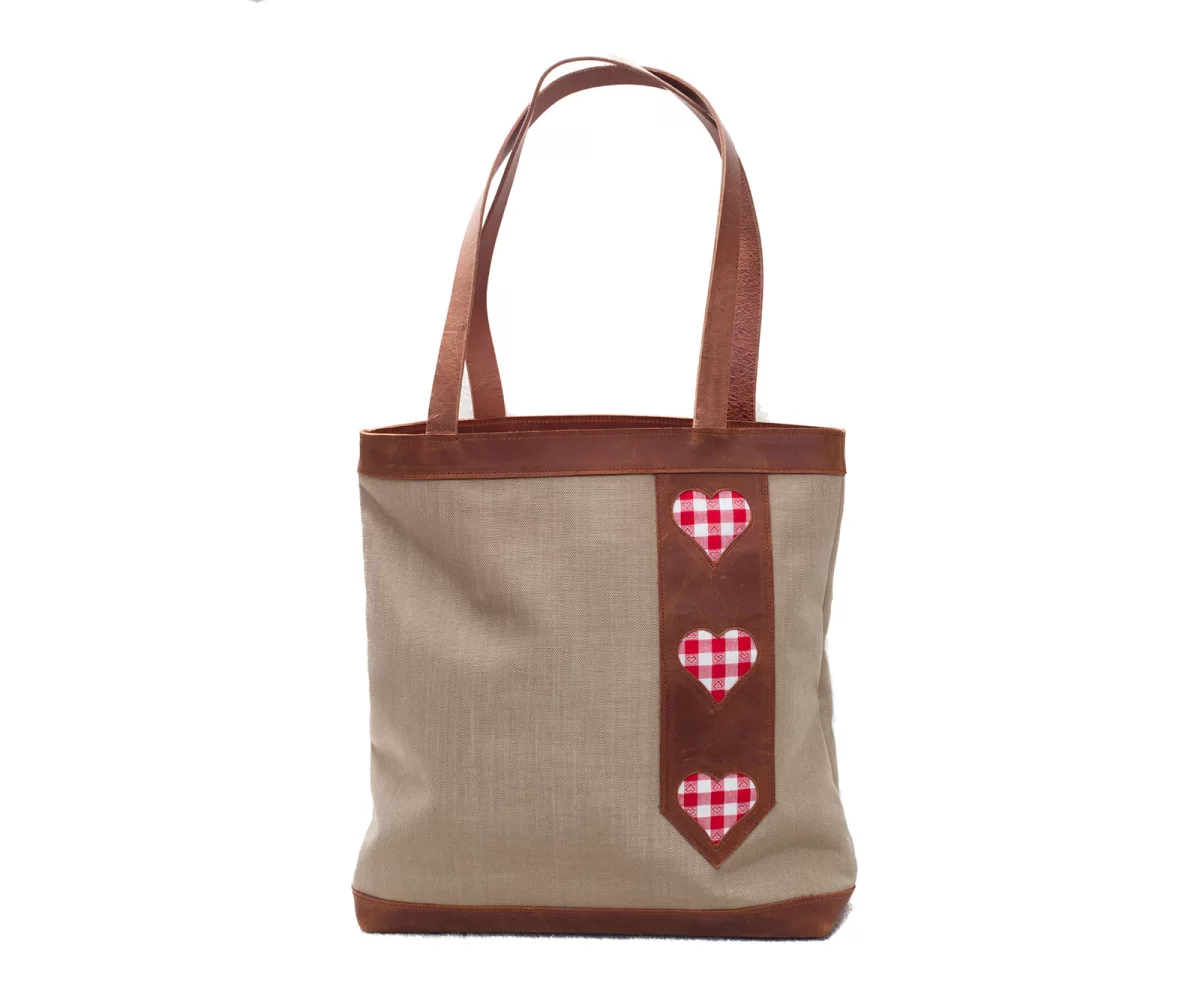 Als Shopper, mit Ordner oder einfach um all die wichtigen Dinge im Leben dabei zu haben. Diese Tasche eignet sich hervorragend dazu. Ausgediente Säcke der Schweizer Post sind das Grundmaterial der Tasche. Zusammen mit der Leder-Applikation und dem Herz-Muster oder mit kleinen Vichy-Karo und Edelweiss, ist es eine Kombination die zu vielen Modetrends kombiniert werden kann.