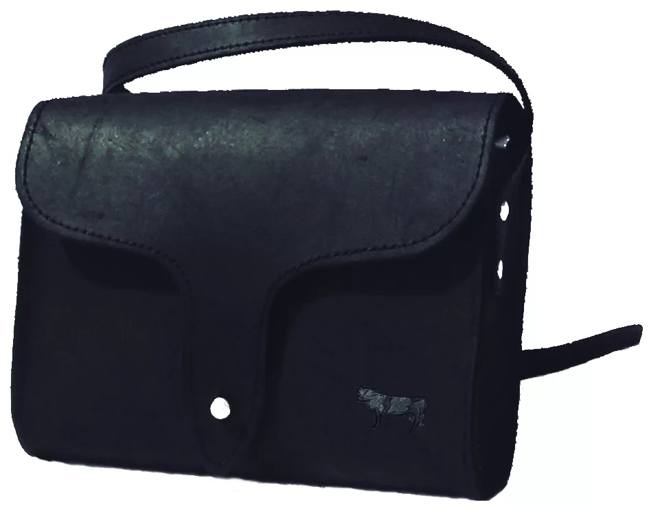 In Braun oder Schwarz - so oder so hat diese Handtasche ihr Flair. Dies durch die Form, den Nietknopf der zugleich der Verschluss ist und natürlich dank der geprägten Kuh. Dezent und doch genug um Fans des Folklore Look anzusprechen.