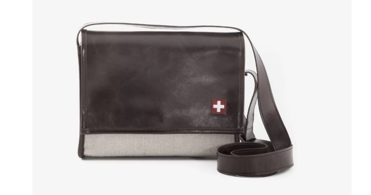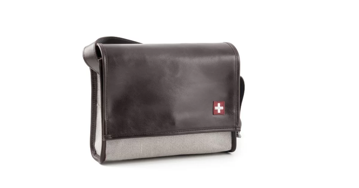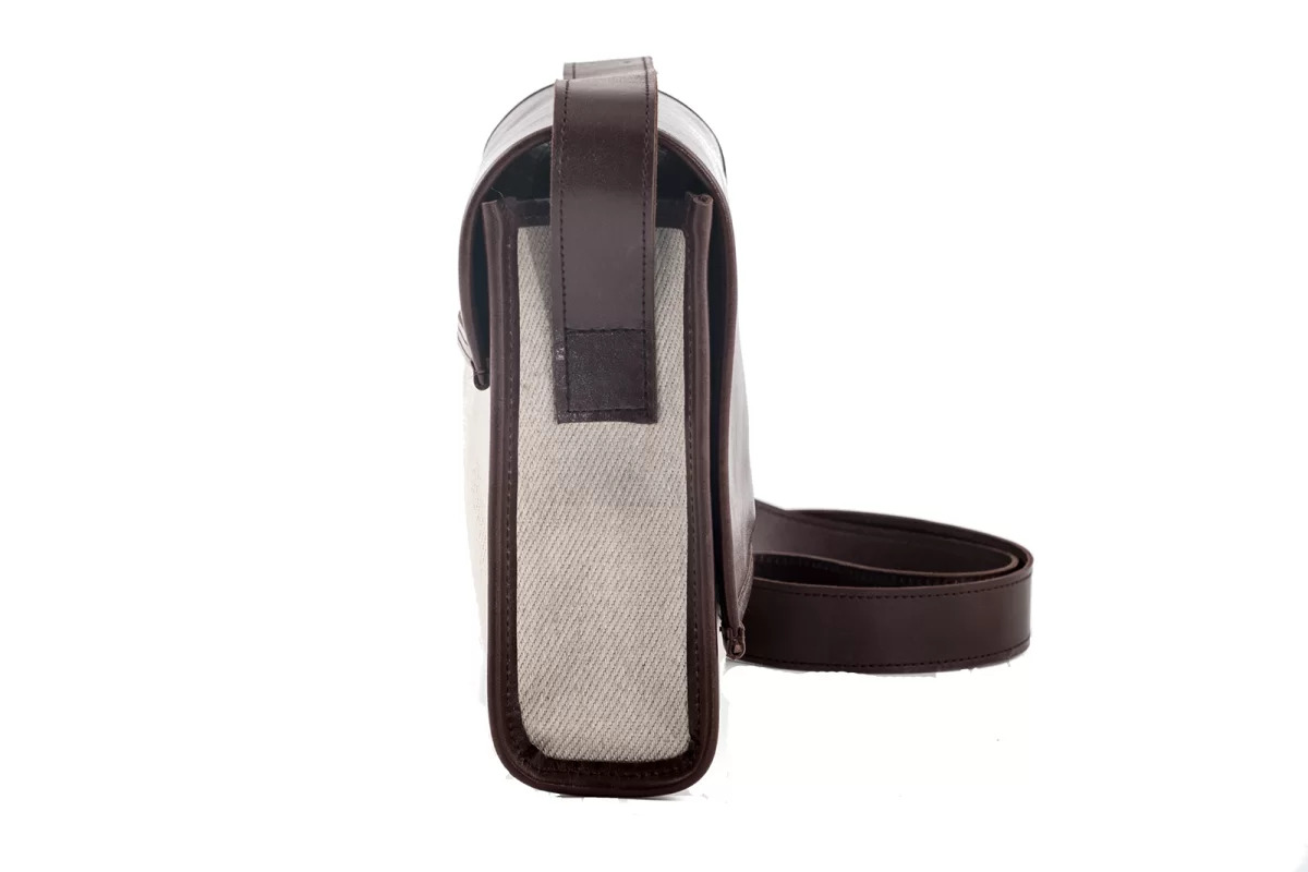 Eine Umhängetasche die alleine schon durch die Materialwahl besticht. Feines Leder mit Zwilch. Der Stoff aus dem Hosen für Könige gemacht werden. Für Schwingerkönige und Könige des Alltags.