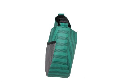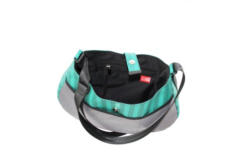 Bei dieser Tasche sind Form und Material nicht alltäglich. Die moderne Form steht in Kontrast zum Traditions behafeten Material. Die Kollektion heisst nicht von ungefähr "Zugvögel" Das Material erinnert die etwas Älteren Kunden an Sitzbezüge in den Wagons von früher. Vielleicht kommt ja auch die Erinnerung an einen Schulausflug hoch. Es war ein Fest die Sonnestoren immer wieder runter zu ziehen und hochspringen zu lassen. Jetzt findet es sich wieder in der Zugvögle-Kollektion. Die Tasche ist innen mit schwarzem Baumwollstoff gefüttert. Sie organisiert die Schlüssel mit einem Band und die anderen wichtigen Utensilien mit einer kleinen Reissverschluss Innentaschen.